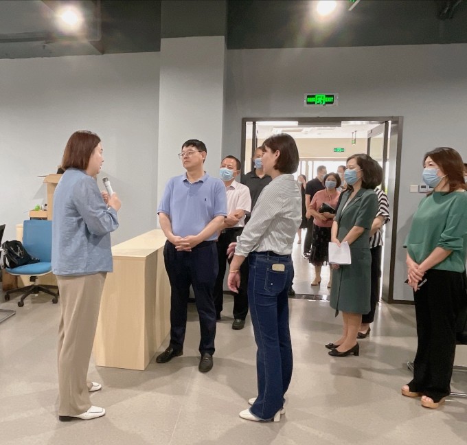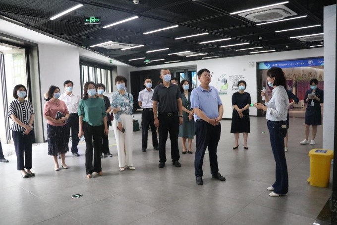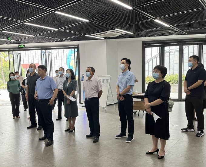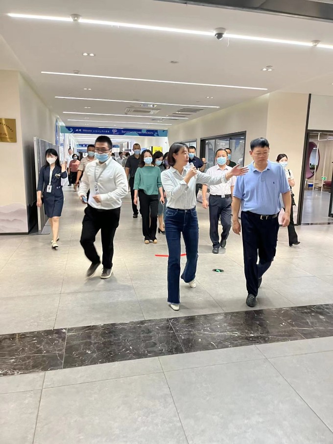 “听介绍”视察组一行在工作人员介绍下,了解了园区各功能板块和配套设施建设情况,了解入园企业创新创业项目的发展和成长情况。